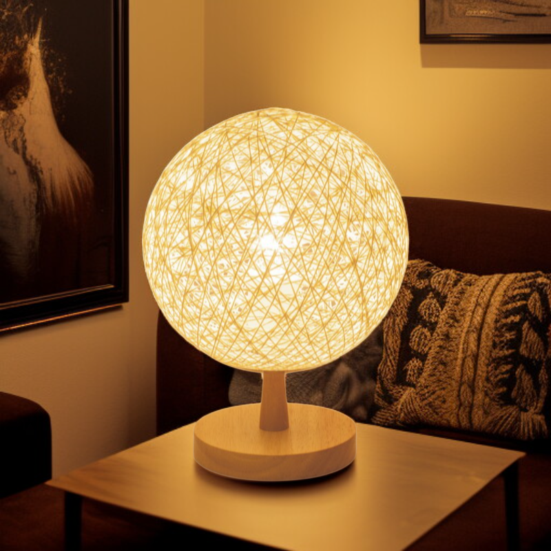 삼베 로프와 등나무 공 모양 테이블 램프