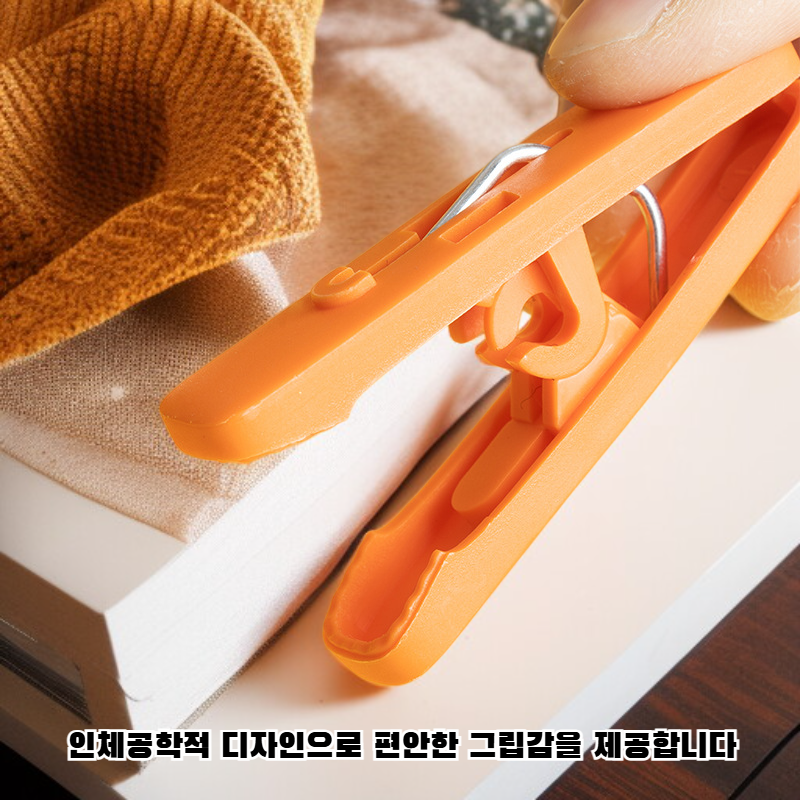 ● 넓은 집게 부분이 다양한 두께의 옷감을 단단하게 잡아주어, 무거운 빨래도 걱정 없이 사용할 수 있습니다.